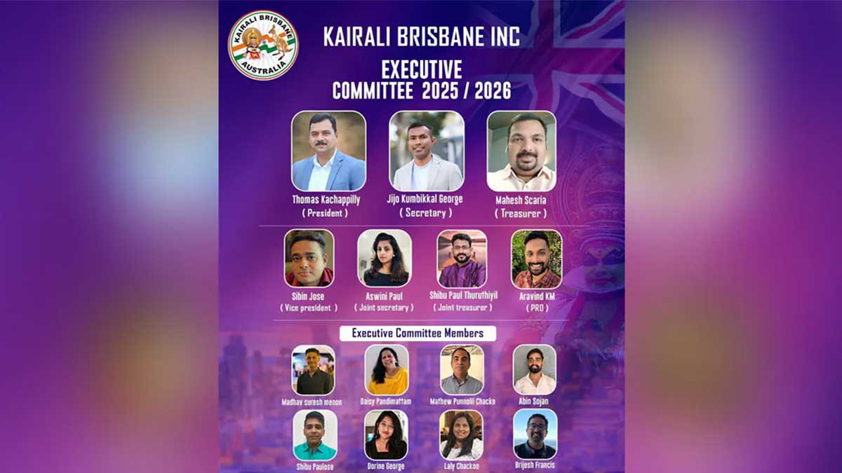 ബ്രിസ്ബെയ്ൻ: ബ്രിസ്ബെയിനിലെ ഏറ്റവും വലിയ മലയാളി സംഘടനകളിലൊന്നായ കൈരളി ബ്രിസ്ബേൻ 2025-2026 കമ്മിറ്റി ഔദ്യോഗികമായി രൂപീകരിച്ചു. കാലഘട്ടത്തിന്റെ പ്രതിസന്ധികളെയും വെല്ലുവിളികളെയും മറികടന്ന് മുന്നോട്ടു പോവുന്ന പുതിയ നേതൃത്വസംഘത്തിന്റെ അമരക്കാരായി പ്രസിഡന്റ് തോമസ് കാച്ചപ്പള്ളി ചുമതലയേറ്റു.